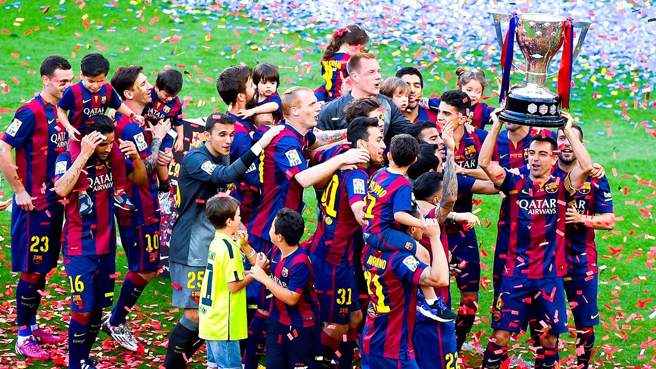 Barcelona Players Celebrate Becoming La Liga Champions After
