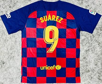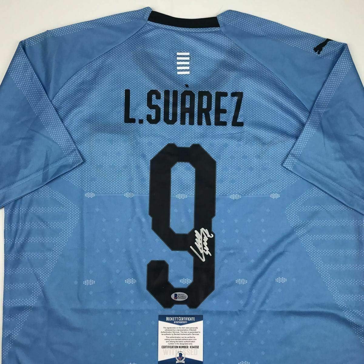 Luis Suarez Number 9 Signed Uruguay Shirt Signed In Silver