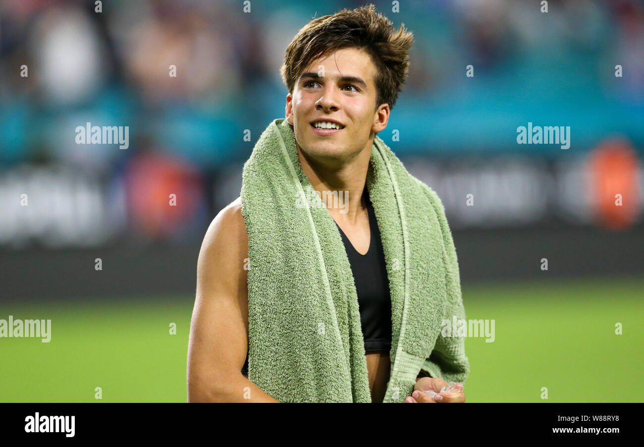 Miami Gardens United States 07th Aug 2019 Fc Barcelona Defender Riqui Pique 3 Smiles For The Fans In A Game Against Ssc Napoli During A La Liga Serie A Cup Soccer Match Wednesday